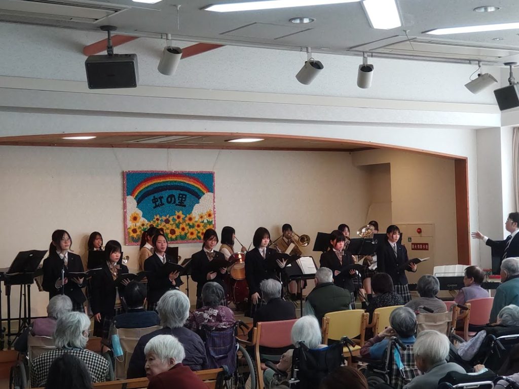 トピックス 清峰高校 コーラス部、吹奏学部慰問 2026年3月27日 3月27日、地元の清峰高校 コーラス部と吹奏学部の皆さんが慰問にきてくださりました。 童謡から松田聖子メドレーなどいろんなジャンルの歌や演奏を披露してくれました。 生徒の皆さん、先生方ありがとうございます。また、来年もお待ちしております。 トピックス一覧へ