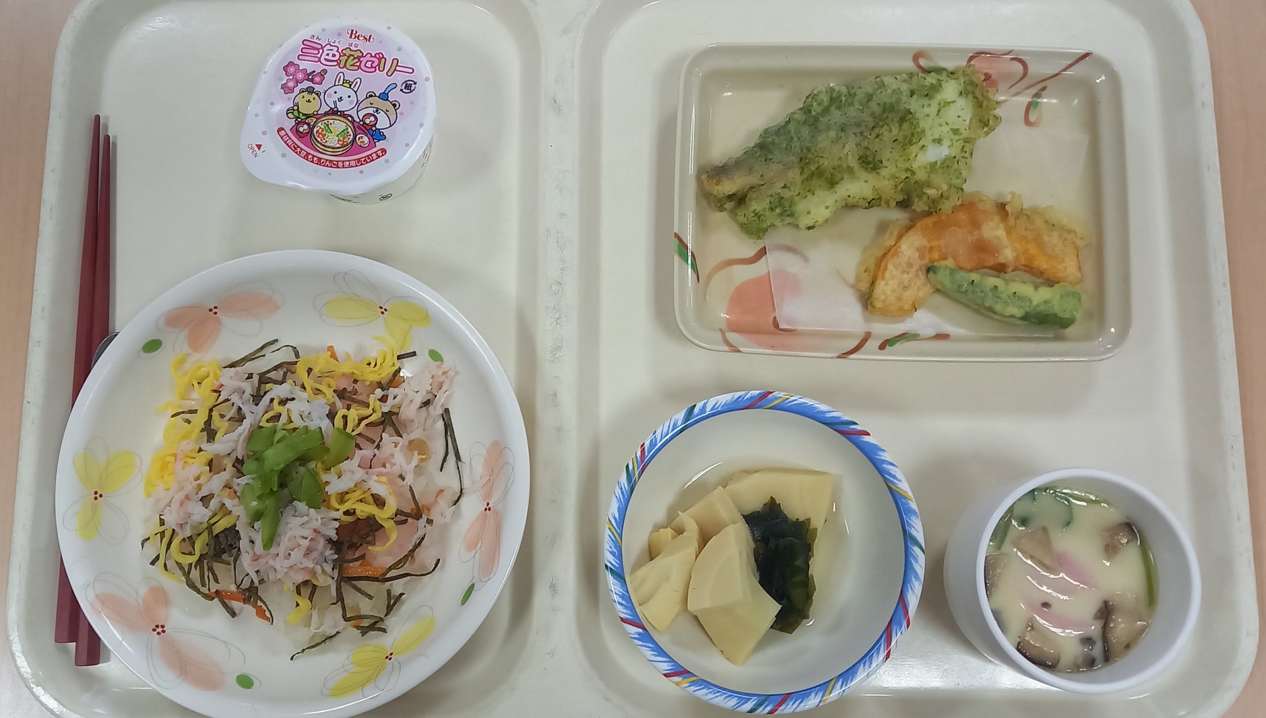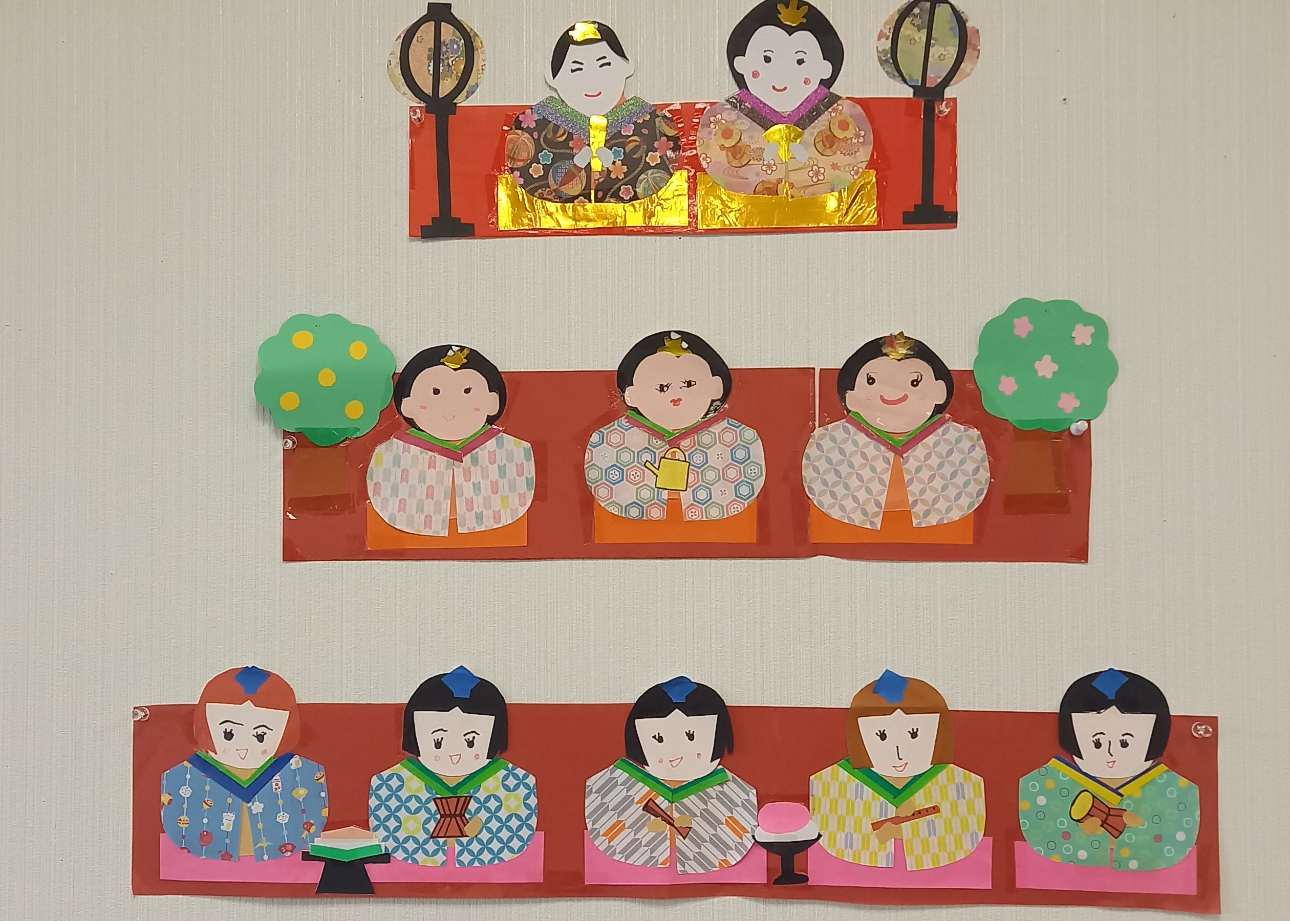 トピックス ひなまつり 2025年3月3日 今日は 3月3日!女の子の健康と成長を祈る行事 「ひな祭り」です。ケアインでも ちらし寿司、タラの磯辺揚げ、若竹煮、茶碗蒸し、三色花ゼリー でお祝いです。 皆様に食べていただけるように菱餅ではなく ゼリーを準備しました。魔除けの桃色・清浄の白・健康の緑 の三色を楽しんで頂きました。 厄災を身代わりに引きうけてくれる雛人形も 各フロアに飾られています 🌸 トピックス一覧へ