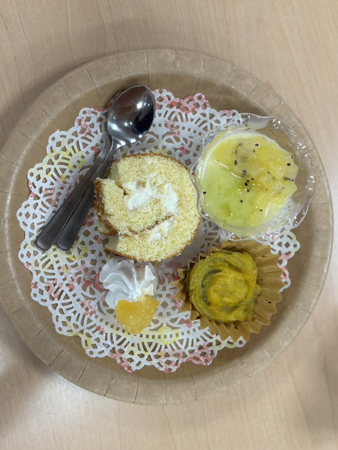 今年度、二度目のカフェ企画、ケーキとドリンクを入居者様に味わって楽しんで頂く、アフタヌーンティーカフェを行いました😊。給食会社のグリーンハウスさんのパティシエが、今回はケーキを愛情たっぷりに作って下さいました😘入居者様からも、「大変美味しかった」「ありがとう」「次回も必ず行ってほしい」との声を直接もらい、次回の計画も考えていきたいと思います!